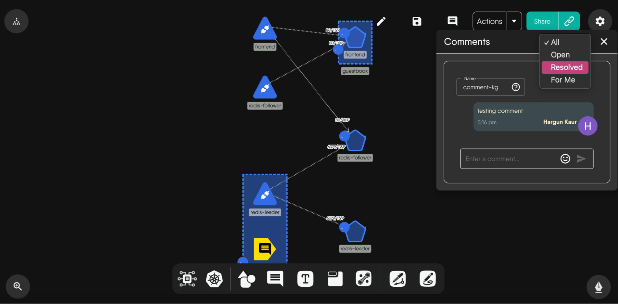 Non-Invasive Annotations: Annotations, shapes, or drawings created within the tool remain separate visual aids, not altering the actual infrastructure components. This means you can annotate freely without worrying about modifying the core design elements.